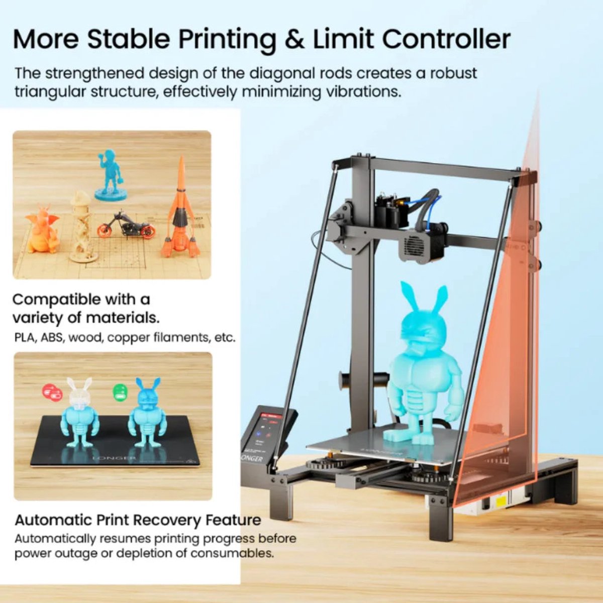 Ben je klaar om je creatieve projecten naar een hoger niveau te tillen? De Longer LK5 Pro is de ultieme 3D-printer die grote ideeën mogelijk maakt, zonder ingewikkeld gedoe. Of je nu een enthousiaste hobbyist bent, een ambitieuze ontwerper of een klein bedrijf, deze krachtige machine combineert gebruiksgemak met hoge prestaties voor een perfecte printervaring.