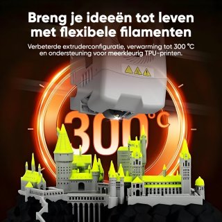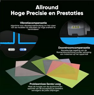 - Ondersteunde materialen: PLA, PLA Pro, HS PLA, PLA Matte, PLA Silk, PETG, PETG Pro, HS PETG, TPU, ASA, PLA-CF, PETG-CF en filamenten van derden